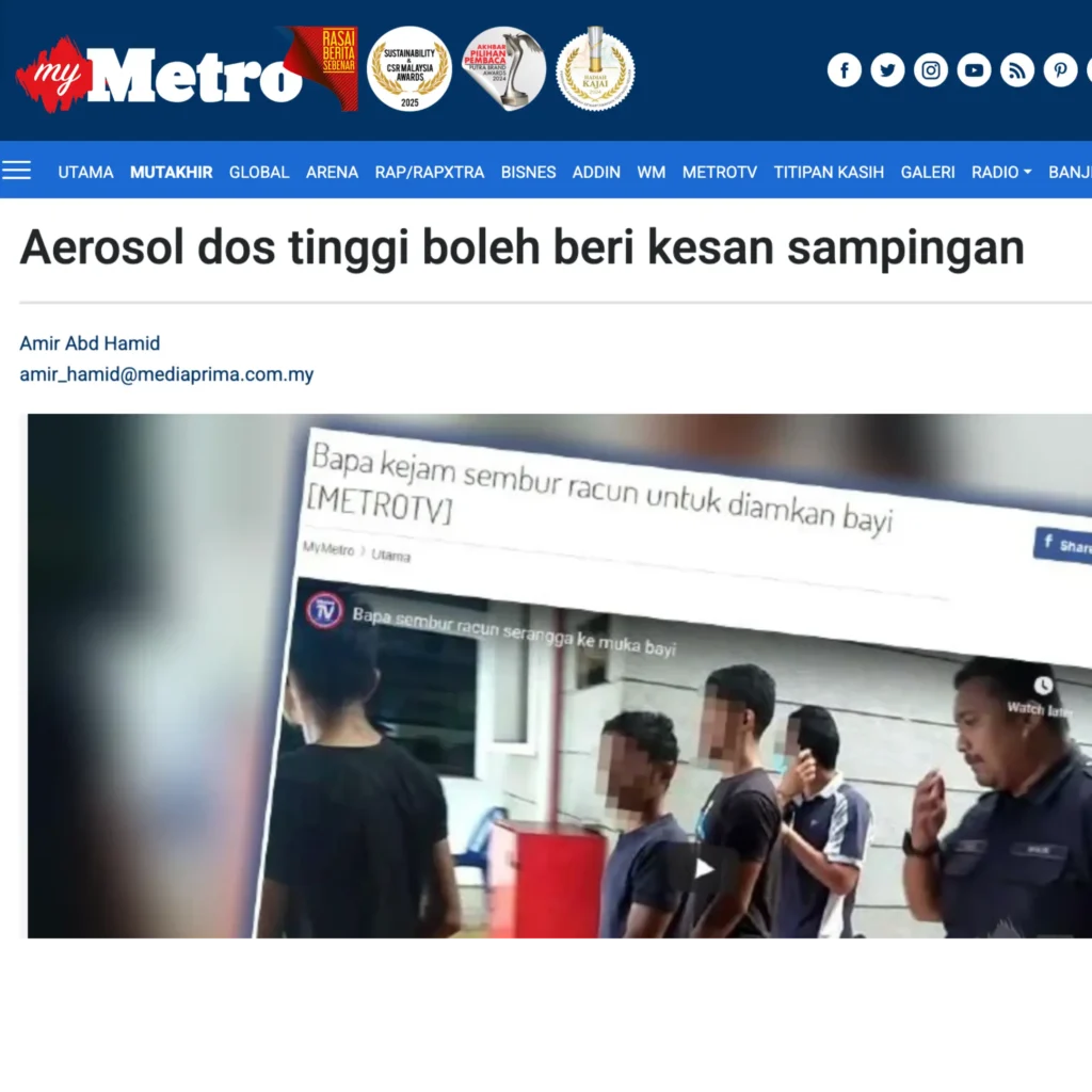 Spray kimia kuat boleh rosakkan paru-paru anak.